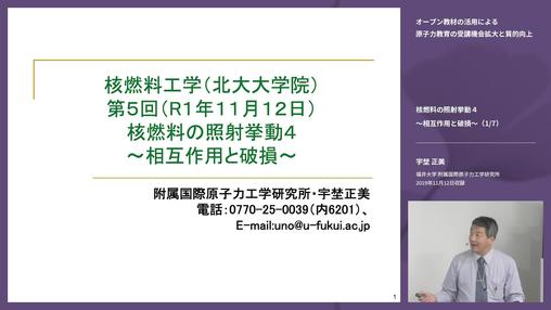 原子力人材育成事業(*) オープン教材の活用による原子力教育の受講機会拡大と質的向上「核燃料工学」