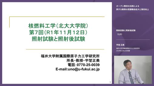 講義7:核燃料工学 第7回 照射試験と照射後試験